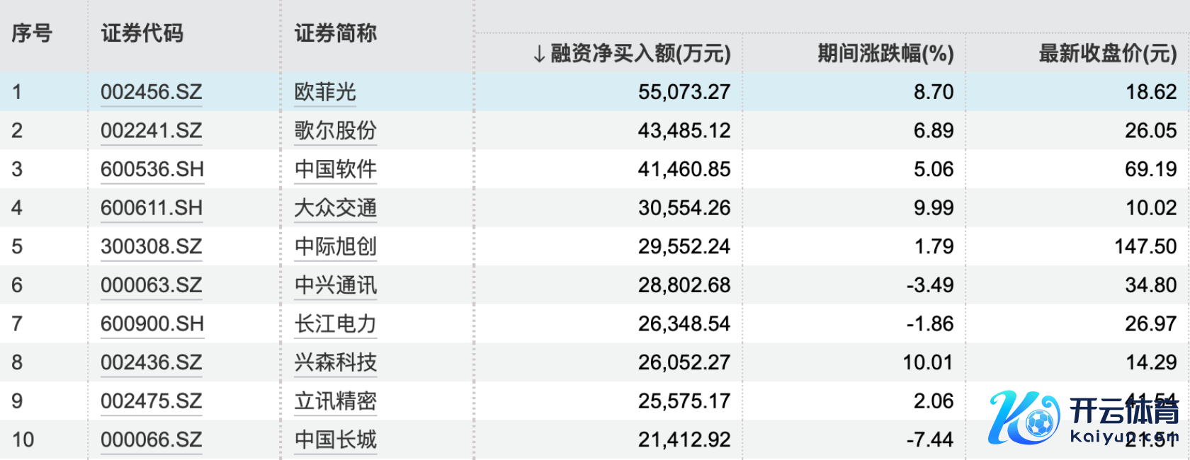 杠杆资金重仓股曝光 欧菲光居首开yun体育网杠杆资金重仓股曝光 欧菲光居首