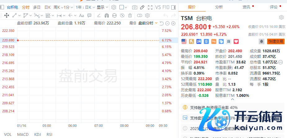 好意思股盘前,中概股大宗高涨,半导体股普涨,台积电涨约7%,台积电Q4净利同比大增57%,2025年景本支拨劝诱超预期,并展望2025年AI加快器营收可望再翻倍。