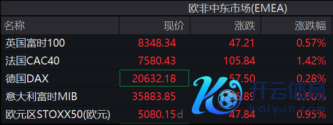 欧股集体高涨,欧洲斯托克50指数涨0.95%,德国DAX指数涨0.28%,英国富时100指数涨0.57%,法国CAC 40指数涨1.42%。