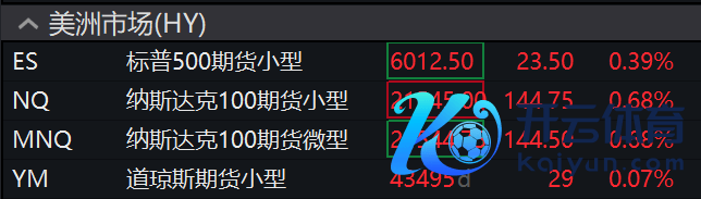 好意思股三大期指高涨,标普500指数期货涨0.39%,纳斯达克100指数期货涨0.68%,谈指期货涨0.07%。