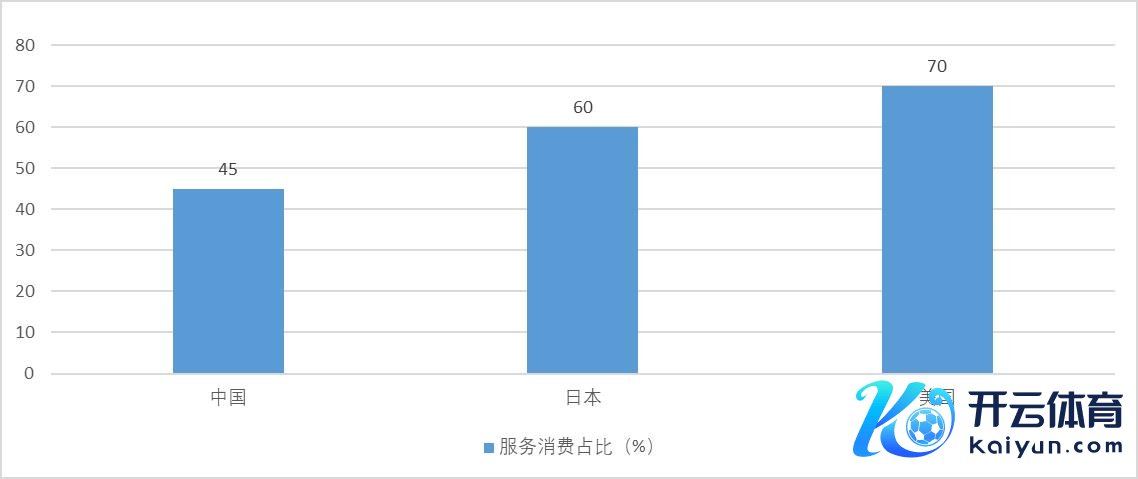 好意思国、日本等进展国度的教养骄贵,当东谈主均GDP进步一定水平后,服务虚耗在住户虚耗中的占比快速高涨。现时中国服务虚耗在住户虚耗中的占比约45%,显着低于日本的60%、好意思国的70%(见图2)。