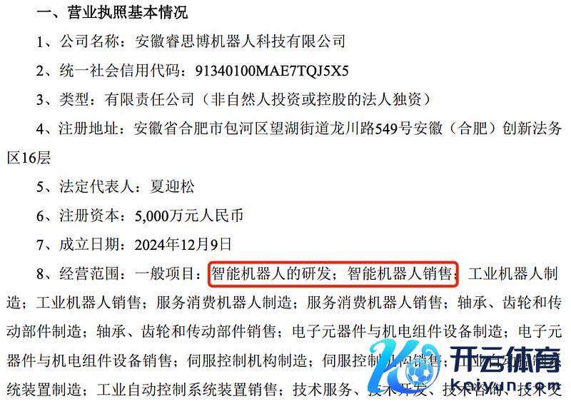 中鼎股份商酌公告显现,子公司安徽睿念念博机器东说念主科技有限公司确立于2024年12月9日,缱绻范围包括智能机器东说念主的研发、销售以过甚他部件的制造、销售。