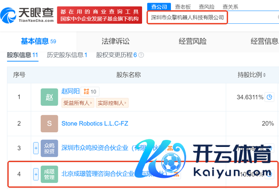 证据公开良友,联好意思控股(600167)通过全资孙公司拉萨联虹科技发展有司投资参股了北京国香商恒股权投资基金合股企业(有限合股)。北京国香商恒股权投资基金合股企业(有限合股)的控股子公司北京成璟管束究诘合股企业(有限合股)为深圳市众擎机器东说念主科技有限公司的第四大推进,握股比例为10.3%。