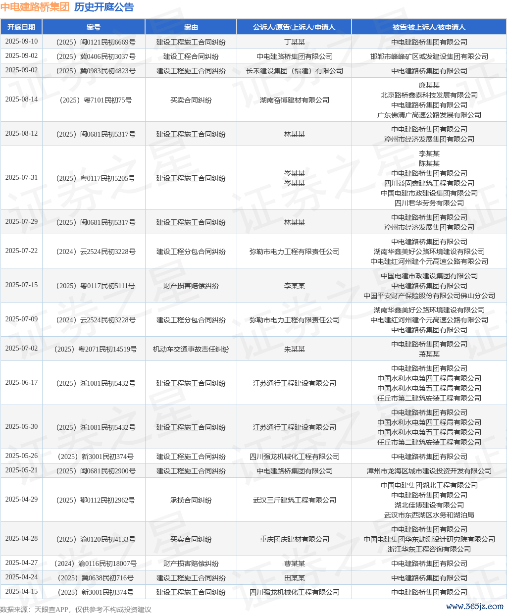 本站音信,阐明天眼查APP泄漏,近日公布了一则中电建路桥集团有限公司行为被告/被上诉东说念主的开庭公告,详备实质如下: